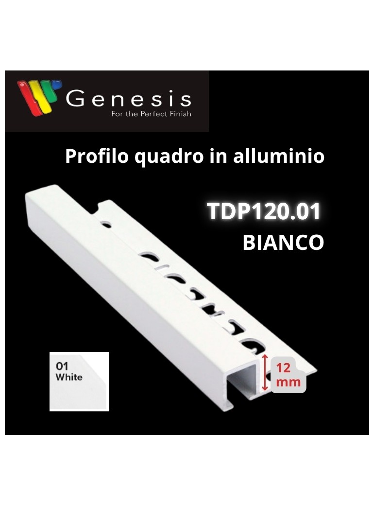 TDP120.01 - PROFILO QUADRO Alluminio 10mm X 12mm - 250cm Bianco (Genesis)