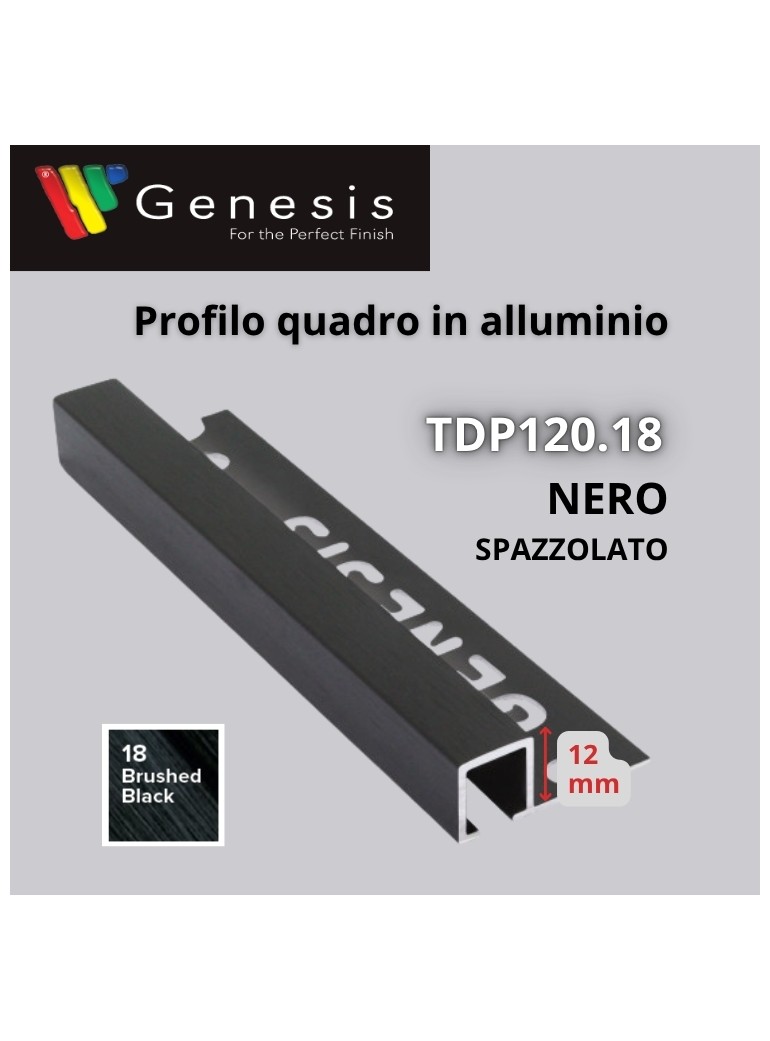 TDP120.18 - PROFILO QUADRO Alluminio 10mm X 12mm - 250cm Nero Spazzolato (Genesis)